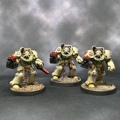 Greetings and welcome back! At long last, I am posting the final pics of my second Deathwing squad project (begun in September for those keeping track...). The first squad was a five member trial. Then I was on to this full ten marine squad. I love how they came out! Sure, the perfectionist in me is yelling about all the lost opportunity here. Honestly I spend FAR to much time browsing the projects of others on Instagram, not to mention all of your fabulous blogs. But I'm honestly happy to call this squad done so I can move on to other projects.